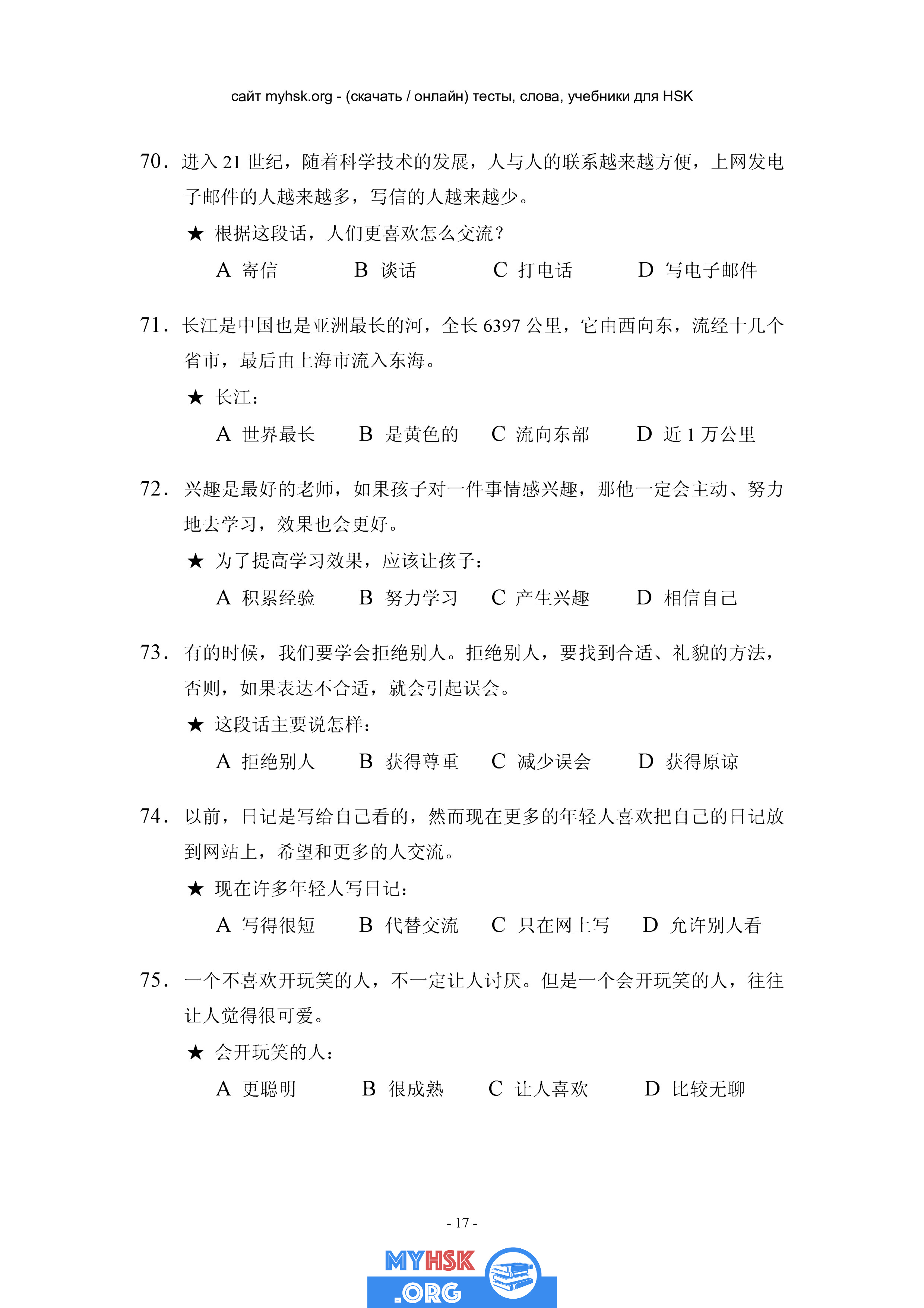 Скачать тест HSK 4 — Вариант H40000. На сайте предоставлен вариант скачивания файлы теста по отдельности и архивом. Для удобства мы загрузили для Вас файлы, которые находятся в архиве в формате ZIP.